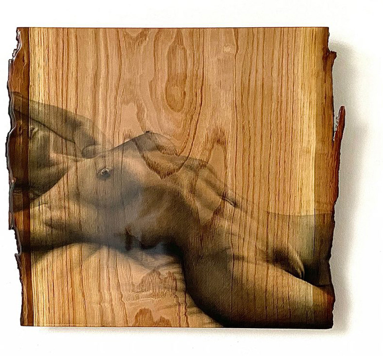 Tekening op tamme kastagne hout.